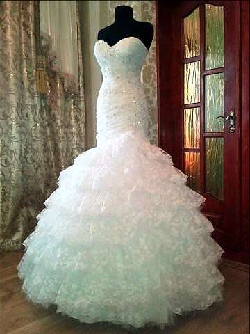 Платье свадебное силуэт "Рыбка". Кружевное, белоснежное, со стразами и камнями. Подойдет на размеры от 40 до 46, т.к. сзади шнуровка (утяжка). Использовалось один день. Состояние нового, после хим.чистки. Мой рост 166 см + каблучок. Последнее фото без подъюбника, в кафе он не нужен )). Есть еще перчатки, и туфли 37 размера. Платье находится в Нижнем Тагиле в районе вокзала.
