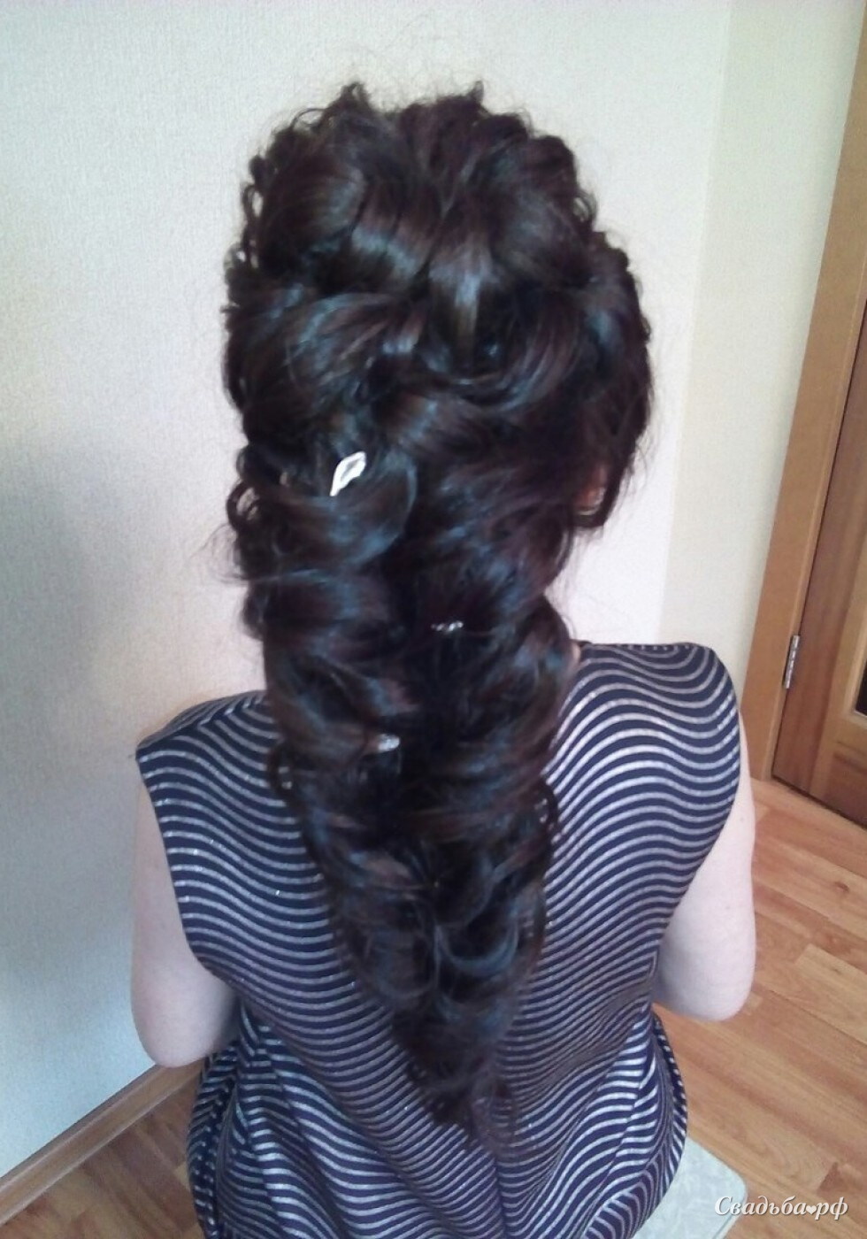 Прическа в греческом стиле. Может выполняться назад или на бок. Возможна в гладком варианте или как на модели. Роскошно смотрится на длинных волосах темных и светлых.Возможно выполнить на более коротких волосах, с добавлением дополнительных прядей.